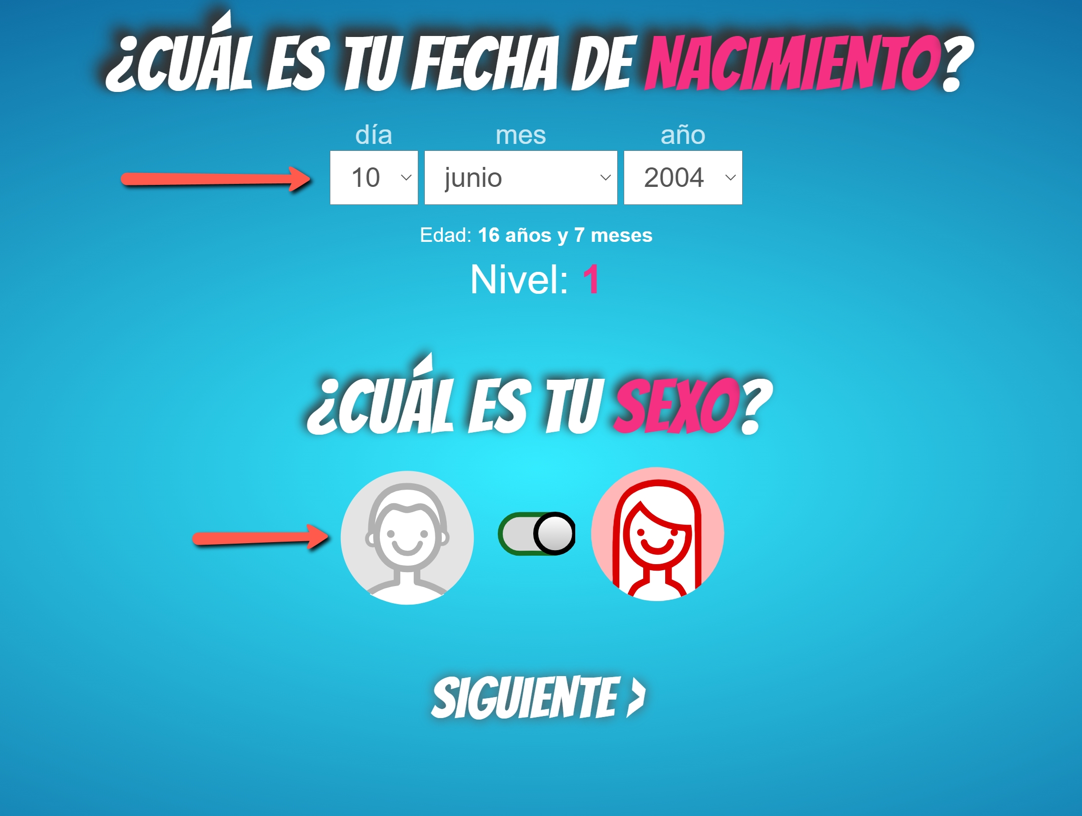 Para acceder a la prueba, el evaluado debe colocar su fecha de nacimiento y su sexo para realizar el cuestionario correspondiente. En caso de dificultades se puede apoyar al evaluado a introducir sus datos.