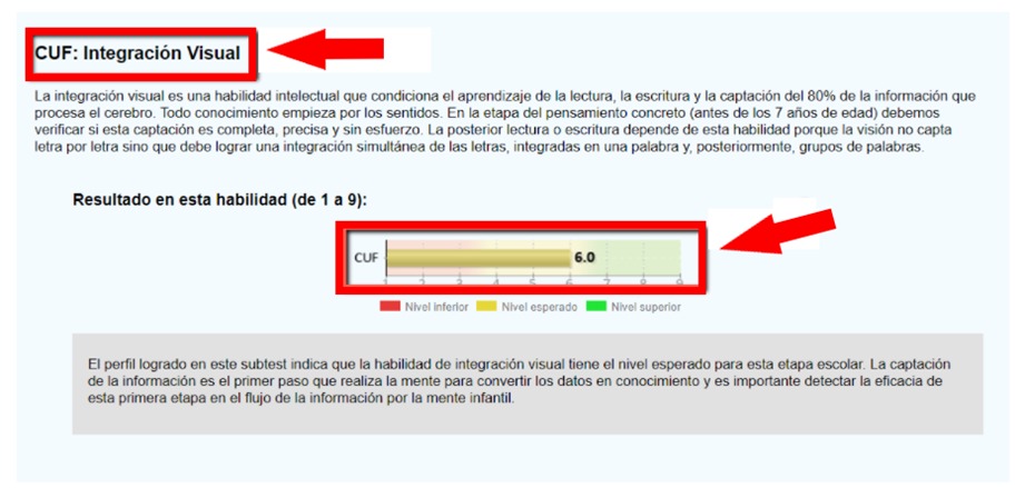 Informe dirigido especialmente al orientador/psicólogo del consultorio y que contiene información sobre los resultados del evaluado y un apartado especial con sugerencias generales. Este informe proporciona un diagnóstico temprano de las habilidades intelectuales, para así prevenir problemas en el aprendizaje y asegurar la cimentación de los procesos cognitivos.
