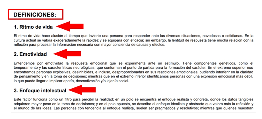Informe dirigido especialmente al orientador/psicólogo del consultorio y que contiene información sobre los resultados del evaluado, con recomendaciones. Específicamente muestra la explicación de cada una de las tendencias evaluadas (generales y específicas); además brinda información sobre las cualidades y debilidades de la tendencia personal evaluada, así como la metodología de atención que se sugiere para iniciar con un proceso de intervención con el evaluado. Dependiente del trabajo que el psicólogo realizará con el evaluado, se puede entregar este mismo informe al evaluado o a los padres de esto.