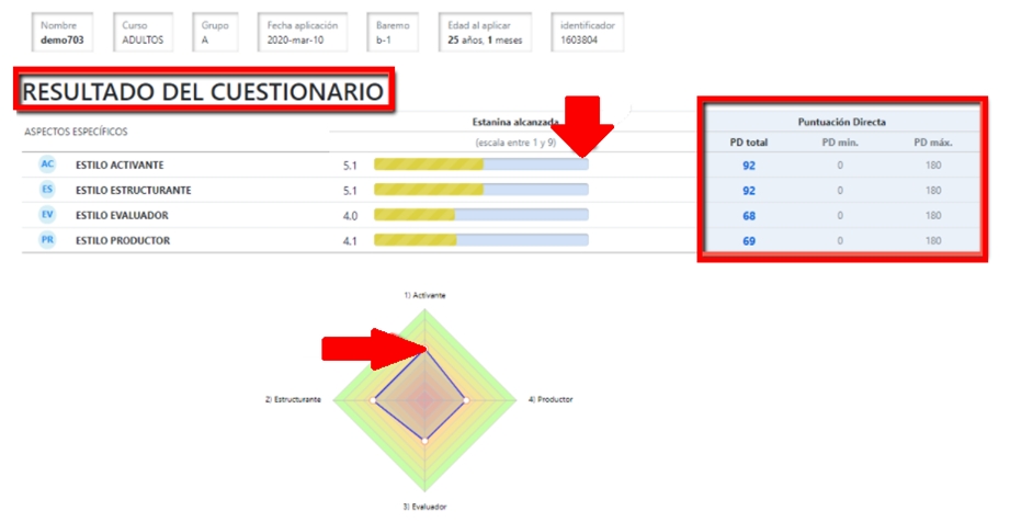 Informe dirigido especialmente al orientador/psicólogo del consultorio y que contiene información sobre los resultados del evaluado. Los resultados ayudarán al evaluado a tener mayor conciencia de los rasgos y tendencias intelectuales y emocionales utilizados cada vez que se busca la solución de un problema. En los resultados, los perfiles generales manifiestan la presencia de cada estilo, pues no son excluyentes entre sí, sino complementarios. El informe realiza un análisis en base a los resultados dando recomendaciones generales destacando las áreas de oportunidad de intervención.
