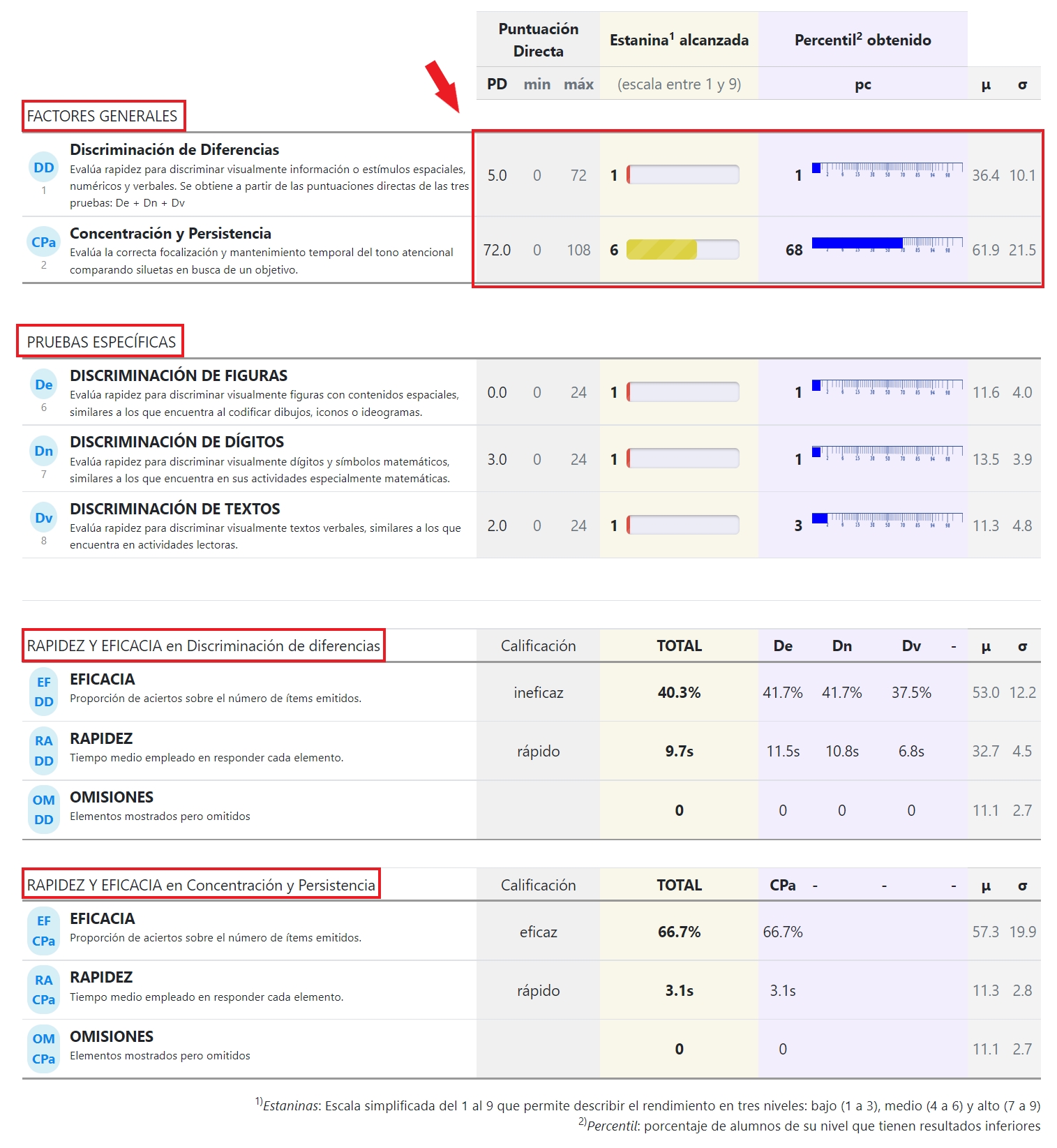 Informe dirigido especialmente al orientador/psicólogo del centro educativo que contiene información sobre los resultados del estudiante. A partir de esta información se puede orientar la intervención de manera ajustada a las necesidades reales del estudiante, para evitar o minimizar la afectación de posibles problemas atencionales en el rendimiento escolar.