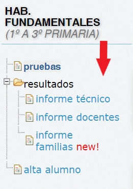 En la barra lateral izquierda podrás visualizar los diferentes tipos de informes para esta prueba: