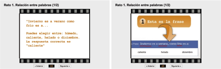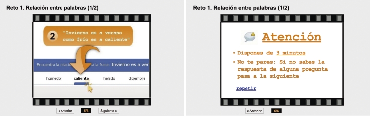 Antes de comenzar cada ejercicio tendrás una breve explicación acompañada de un ejemplo que te servirá para entender bien lo que tienes que hacer. Asegúrate de comprenderlo antes de comenzar. En el caso de tener alguna duda, pregunta al responsable de la aplicación. El tiempo avanza mientras lees las explicaciones.