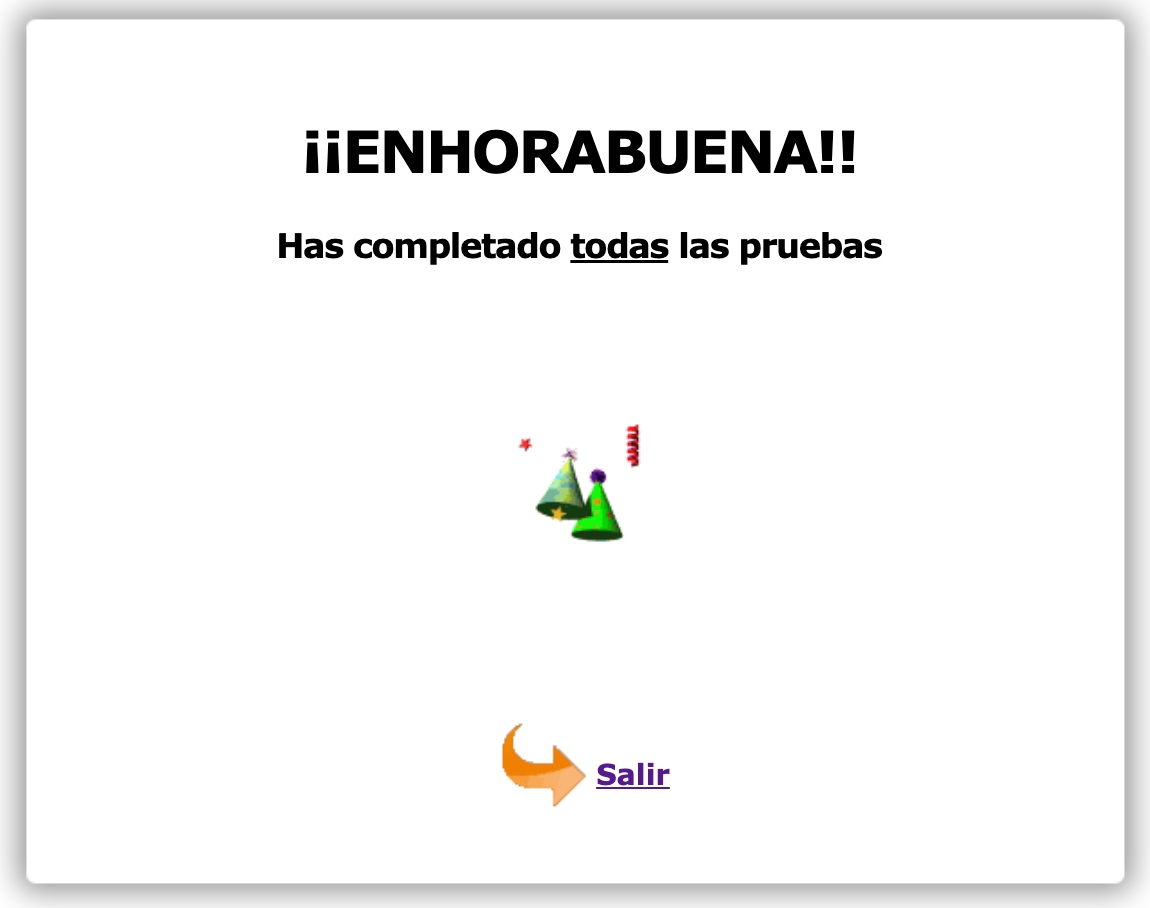 Vas a realizar una serie de retos. Cada reto tiene un tiempo máximo de realización. No por acabar antes vas a poder pasar al siguiente reto, así que conviene que te concentres y que no tengas demasiada prisa en acabar.