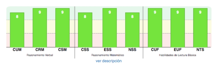 La prueba de Habilidades está diseñada para poder identificar las diferencias individuales dentro del grupo. Se plantean una serie de criterios en los que se define, según las recomendaciones de la OCDE, qué habilidades y en qué nivel deben estar desarrolladas. Los estudiantes deberán esforzarse al máximo durante la ejecución de la prueba, pero cada uno de ellos en función de su nivel de desarrollo será capaz de alcanzar un nivel que organizamos en estaninas que puntúan de 1 a 9 y que se clasifican en tres rangos de rendimiento: bajo, medio y superior.