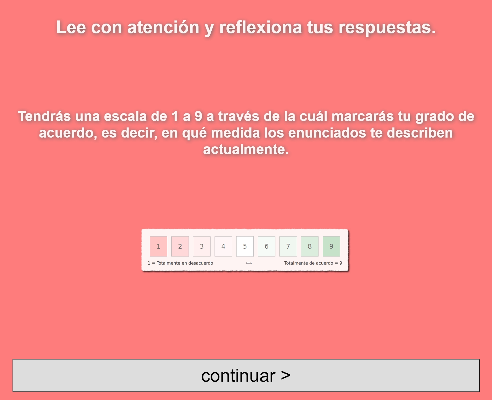 Para empezar la prueba, se debe dar a "CONTINUAR" al finalizar la lectura de las instrucciones.