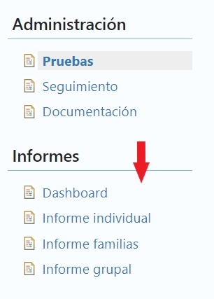 En la barra lateral izquierda podrás visualizar los diferentes tipos de informes para esta prueba: