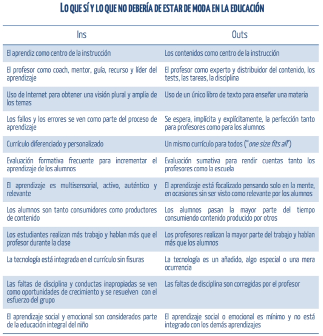 El catedrático Javier Tourón, experto en el desarrollo del talento, propone las siguientes características en la educación actual, entre las que se incluye el desarrollo de las competencias sociales y emocionales.