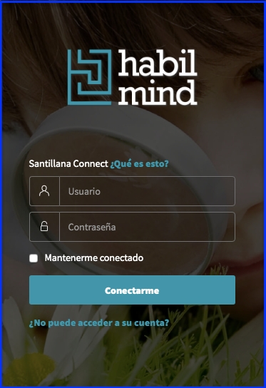 O desde Santillana Connect (en el caso de que el colegio utilice esta opción de acceso). En este caso, deberás introducir las credenciales que utilizas para el LMS de Santillana.