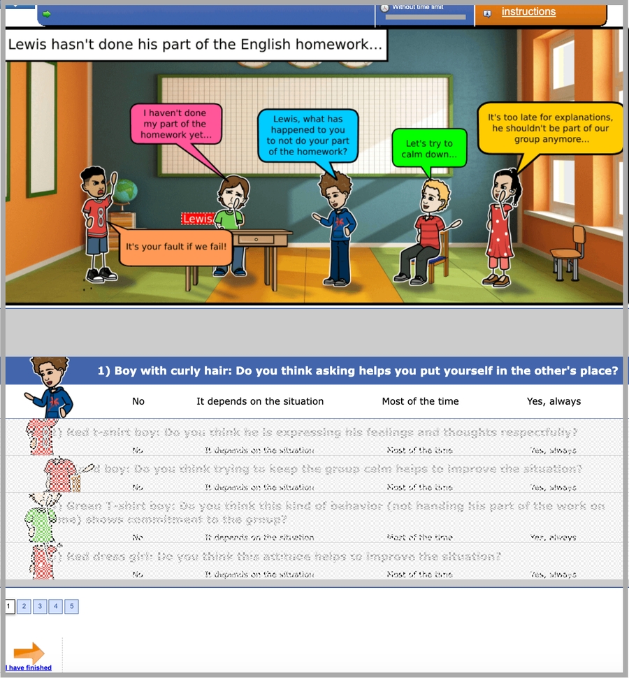 Students from 4th grade onwards will be able to take the complete test (Sociogram and Emociogram).