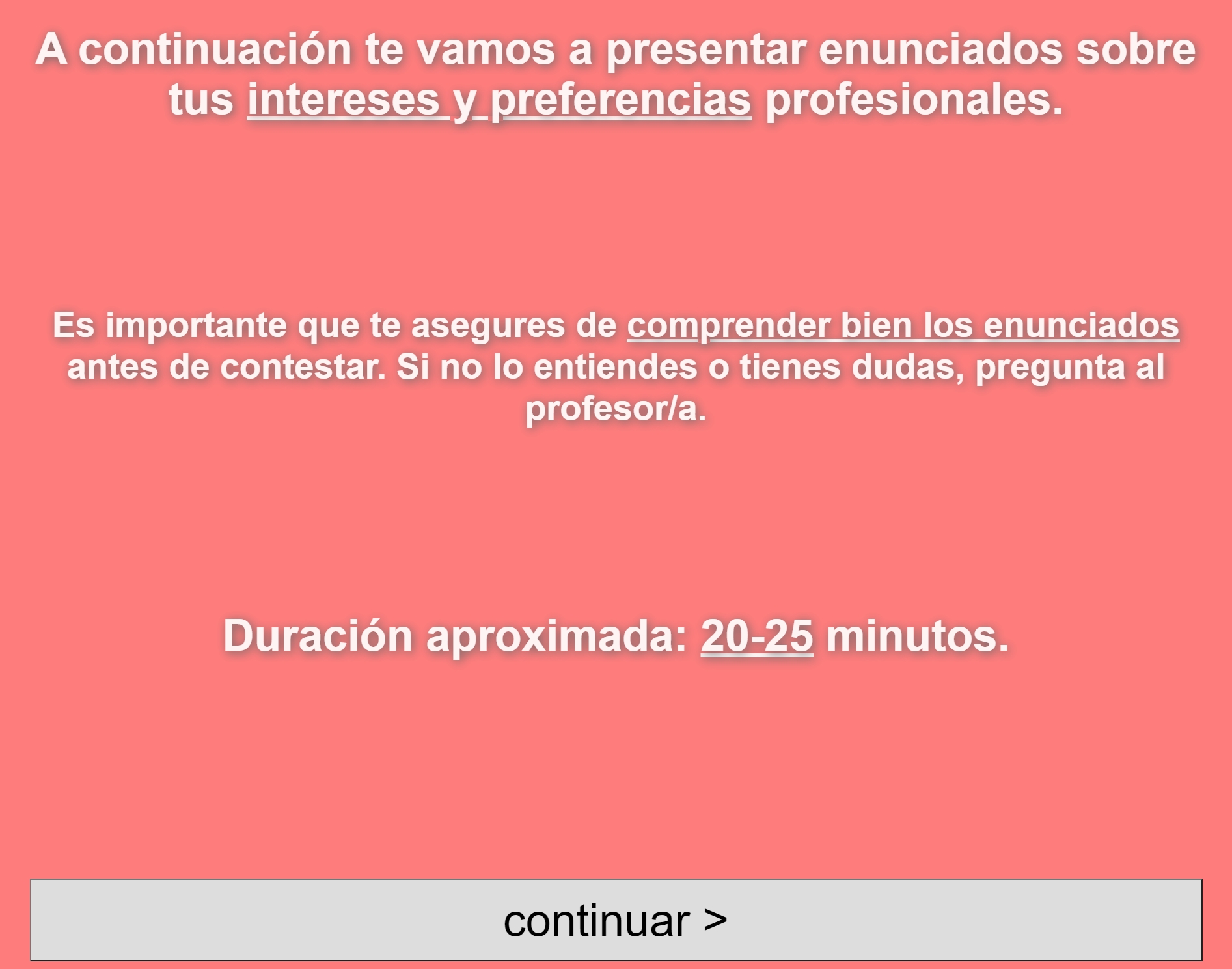 a. Esta prueba te ayudará a conocer mejor tus preferencias profesionales. Es una herramienta de autoconocimiento que te ayudará a ordenar tus intereses para elegir tus estudios posteriores.