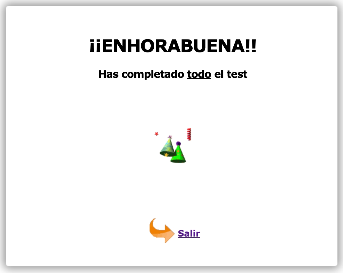 5. Cuando el alumno ha terminado la prueba aparece el siguiente mensaje. Debe hacer clic en “salir”.