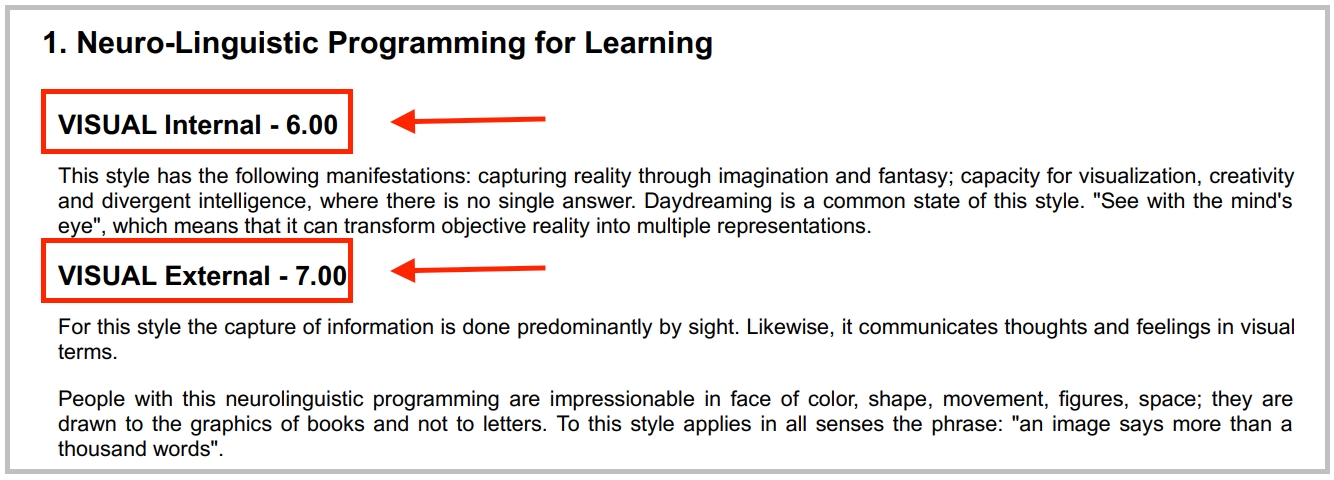 This article explains the different types of Learning Styles test reports that you will access when one of your patients has completed the test. This article allows you to download the sample report for each of the types so that you can get to know them better. The assessor will share these reports with you after the assessment is completed.